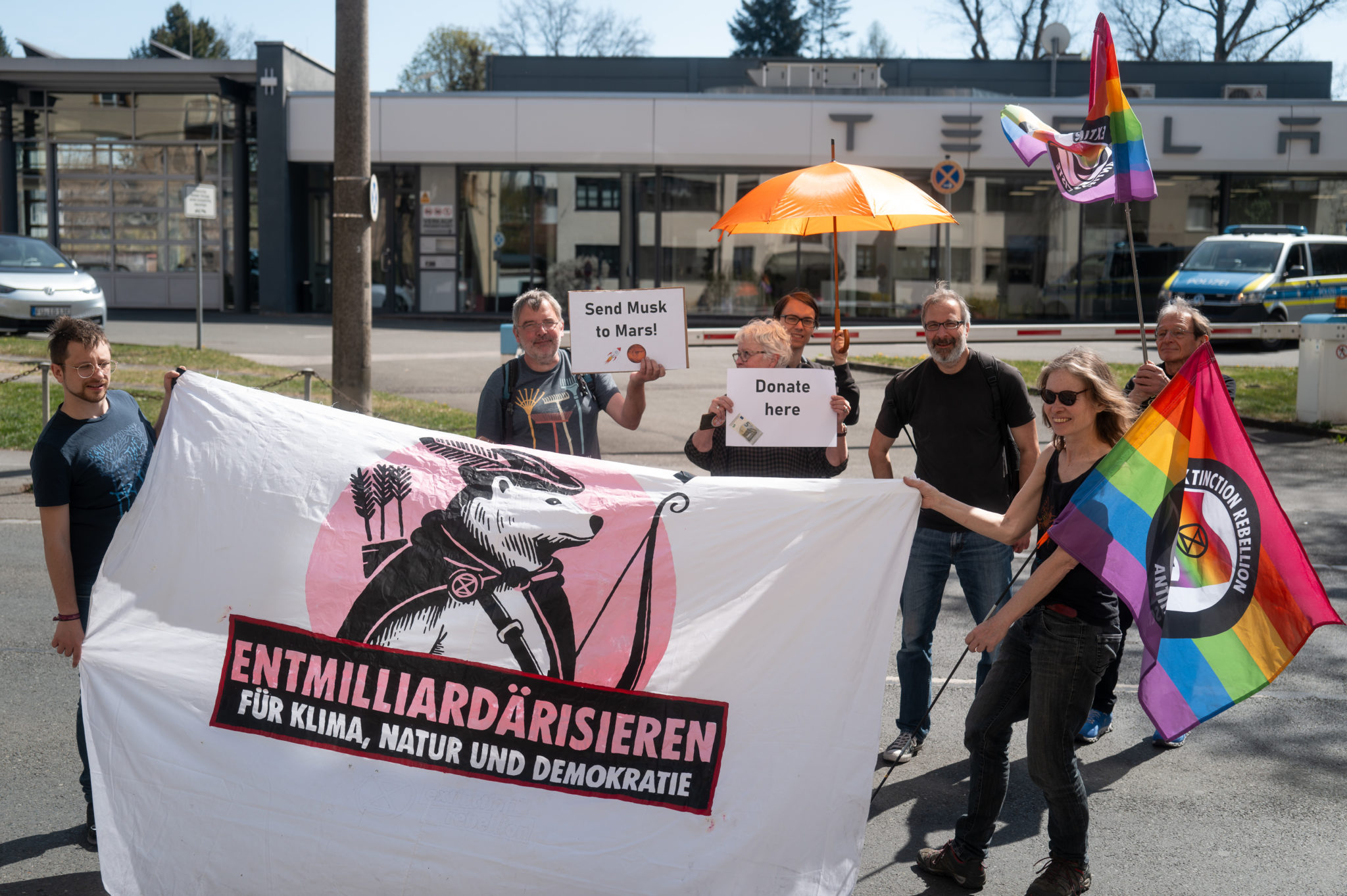 Unter dem Motto „Deutschland Entmilliardärisieren – Überreiche Entmachten“ kritisierten die Teilnehmenden den wachsenden Einfluss von Superreichen wie Elon Musk auf politische Entscheidungsprozesse. Die Aktion umfasste eine Mahnwache mit Redebeiträgen von Fridays for Future sowie eine künstlerische Performance, die die Gefahren der Machtkonzentration bei einzelnen Milliardären für die Demokratie thematisierte. Zentrales Anliegen war die Forderung nach gerechter Besteuerung extremen Reichtums und dessen Umverteilung für Klimaschutzmaßnahmen
